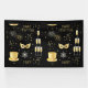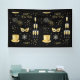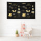 Esta pancarta muestra las palabras "Feliz Año Nuevo" en una fuente única/de impresión fina con letras de color dorado más fuegos artificiales, confeti, máscara, sombreros y formas y patrones de copas de champán en este tema y estilo de Año Nuevo. Esta pancarta tiene medidas de impresión seguras para exteriores de un solo lado de 6 "x10" hechas con un acabado mate elegante y es resistente a la decoloración y al desgarro para uso en interiores o exteriores, excelente para anunciar cualquier cosa, desde cumpleaños hasta graduaciones, bodas y aniversarios. Bordes doblados y soldados térmicamente para un acabado limpio. Las pancartas exteriores se pueden comprar con ojetes metálicos.