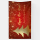 Lona Feliz Año Nuevo, Rojo, Árbol de Navidad de oro
