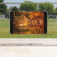 Lona Felíz cartel al aire libre con dibujos de Hallowee
