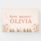 Fácil de personalizar con el nombre. Presenta flores de moda boho en un estilo acuarela, con tipografía naranja y rosa. ¡Qué mejor manera de decir feliz cumpleaños!