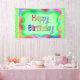 Con brillantes espasmos de color y lujosos tipos de letra, este genérico banner de cumpleaños le dará un toque de alegría a cualquier fiesta.