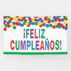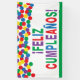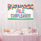 Feliz cumpleaños de Feliz Cumpleaños en español bandera del fiesta/de Español. ¡Humor colorido para su fiesta! Impulsos en adorno brillante de los colores con las letras multicoloras convenientes para las fiestas de cumpleaños de los niños o de los adultos.