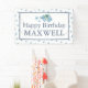 Este cartel fiesta presenta un bonito pulpo acuarela y estelar en tonos azules. Las palabras "Feliz Cumpleaños" y el nombre de su hijo están fijadas en un tipo de letra clásico. Utilice los campos de plantilla para agregar el saludo de su personalizado. Una magnífica elección para la decoración de la fiesta de cumpleaños de los niños. Para ver el tema coincidente, visite www.zazzle.com/dotellabelle