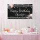 Lona Feliz cumpleaños nombre flores rosadas Confetti