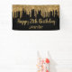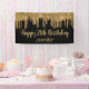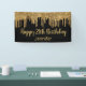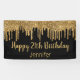 Lona feliz cumpleaños oro negro goteando purpurina moda