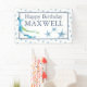 ¡Celebren con estilo con este cartel personalizado diseñado como una pancarta de feliz cumpleaños para los chicos! Con un bonito patrón de ballena acuática y estrella de mar en tonos azules suaves, este diseño lúdico es perfecto para un fiesta de playa o piscina con temática náutica. Personalice su signo de cumpleaños feliz con el nombre y el saludo de su hijo utilizando los campos de plantilla fáciles de editar. Estas señales personalizadas de feliz cumpleaños le dan un ambiente costero a cualquier celebración y son ideales para los pequeños amantes del océano. Para explorar una decoración de fiesta de cumpleaños más parecida, visita www.zazzle.com/dotellabelle. Arte original y diseño de Victoria Grigaliunas de Do Tell A Belle.