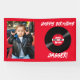 Decoren su fiesta de cumpleaños al estilo rockin con este cartel de fiesta de cumpleaños retro vinil con una foto de su pequeño rockero. Rojo claro, negro y blanco. Un registro de vinilo personalizado con un rayo en el centro de este diseño de roca y rollo. Feliz cumpleaños con un estilo casual de graffiti. Se pueden personalizar todo el texto y los colores.