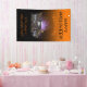 Este es un banner personalizado de la fiesta de bienvenida de Halloween con colores naranjas negros con material tradicional de Halloween. Es una gran decoración interior/exterior para la fiesta de Halloween.