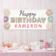 Coordine la decoración de su fiesta con un banner de nombre personalizado. ¡Tu dulce y pequeño merece una deliciosa fiesta de cumpleaños! El tema de las donuts de The Sweetest One es divertido y está lleno de colores modernos y salpicado por encima. ¡Excelente, memorable y perfecto para la fiesta de primer cumpleaños del bebé! •Personalízalo! Si es necesario, puede ajustar el tamaño y la disposición de los elementos. ・ ¡Coordinarlo! Navegue por la Colección de Cumpleaños más dulce de un donuts para todos los productos que coincidan, incluyendo tarjetas de felicitación de fotos, etiquetas de dirección de retorno y más!