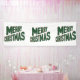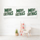 Esta pancarta muestra las palabras "Merry Christmas" en una fuente de letra negrita con letras verdes y contorno rojo con letras de diferentes tamaños en el fondo en este tema y estilo de X-mas. Esta pancarta tiene impresión en un solo lado, medidas seguras para exteriores de 4 "x12", está hecha con un acabado mate elegante y es resistente tanto a la decoloración como al desgarro para uso en interiores o exteriores, ideal para anunciar cualquier cosa, desde cumpleaños hasta graduaciones, bodas y aniversarios. Bordes doblados y soldados térmicamente para un acabado limpio. Las pancartas exteriores se pueden comprar con ojetes metálicos.