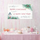 Banner personalizado para desear a sus invitados o, vecinos y transeúntes, una feliz navidad y feliz año nuevo. El diseño presenta guirnaldas acuáticas de follaje tradicional de invierno; hojaldre, bayas, mistletoe y escarabajos de pino, así como una linterna nostálgica iluminada con velas. El texto está escrito en elegante tipografía manuscrita y tipografía en mayúsculas en gris rojo y azul. La plantilla está configurada para que agregue el nombre de su familia.