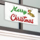Lona Feliz Navidad Flying Reindeer guión verde rojo
