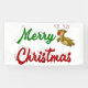 Cartel con Feliz Navidad en 3D texto verde y rojo y reno. Disponible en varios tamaños para interiores y exteriores.