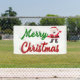 Cartel con Feliz Navidad en texto verde y rojo 3D y Santa Claus. Disponible en varios tamaños para interiores y exteriores.