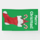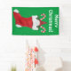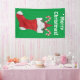Esta pancarta de tela es verde con un lindo gnomo barbudo en la parte superior de un Navidad rojo y blanco que se abastece de dulces y racimos de hojas huecas con bayas rojas. Personalizar el texto Feliz Navidad con la plantilla.