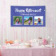¡Feliz Jubilación Lavanda Purple Múltiples Fotos Banner Personaliza este banner con el nombre, el texto personalizado que elijas y 3 fotos para una celebración especial de retiro! Este banner se puede usar para planificar el trabajo, el patio trasero y los fiestas de retiro. Compra en nuestra tienda más artículos para ayudarle a planificar una celebración de retiro para tu compañero de trabajo, colega, amigo o familiar especial.