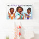 Un trío afroamericano vestido de blanco con ceniza de color individual canta elogios por las vacaciones, haciendo un alegre ruido con manos, voz e instrumentación.
