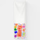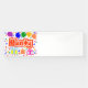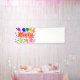 Un banner interior de 2,5'x8', dibujo/diseño, de la palabra=Fiesta, en color rojo y blanco, con algunos globos coloridos, confeti y paquetes de regalo, =(Dibujo/diseño de P.J.M.) en la esquina izquierda.