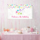 Esta bonita pancarta de cumpleaños presenta coloridas manchas de pintura arco iris.