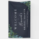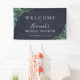 Follaje rústico de acuarela, banner de evento personalizado. Color del fondo azul marino y tipografía en blanco moda.