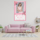 Elegante, glamuroso y femenino para una fiesta de 21 años. Bandas verticales de color rosa y blanco, clásicas y de moda. Decorada con flores rosas, peonías y rosas. Plantillas para un nombre, edad 21, fecha de nacimiento y fecha del aniversario. Plantilla para su propia foto vertical. Con el texto: ¡Bienvenido! ¡Girona y elegante!