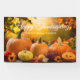 Elegante pancarta de fiesta de Acción de Gracias de empresa personalizada con adorables calabazas de otoño y girasoles de otoño que decoran la parte frontal debajo del nombre de su empresa y saludo de Feliz Día de Acción de Gracias. Decoración de vacaciones corporativas para una oficina.