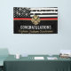 Este diseño cuenta con una bandera de bomberos con rayas blancas y negras y una delgada franja roja. "Felicitaciones" y la insignia de un bombero se sienta por encima del nombre del bombero, teniente o jefe que se gradúa o se retira. ¡Celebren con estilo!