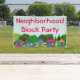 La calle arbolada maravillosa adorna esta bandera. Perfeccione para sus fiestas de la vecindad. La fraseología se puede cambiar según lo necesitado. Material al aire libre con los ojales para atar. Reutilizable año tras año.