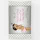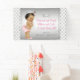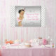 Bandera de fiesta de bebé niña con adorable princesa étnica bebé niña de rosa y plata que lleva pantalones de volantes rosados, collar de perlas y hermosa corona de diamantes de plata en un hermoso fondo de diamantes acolchados. Puede agregar el texto que desee para personalizar esta elegante bandera de princesa rosa y gris para fiesta de bebé.