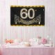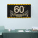 Banner de cumpleaños 60 con hermosos números de diamante dorado y pancarta negra y dorada en un fondo negro y dorado. Puede cambiar el color del fondo, cambiar el tamaño del banner numérico y agregar texto para personalizar este elegante banner de cumpleaños 60. Este es un diseño impreso sin diamantes reales, purpurina, etc.