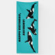 Crea tus propios suministros de fiesta asesinos personalizados, es decir, ballenas asesinas. Este cartel fiesta presenta ilustraciones de orcas o ballenas asesinas en blanco y negro contra un fondo azul verde azulado y están listos para ser personalizados con tu texto en negrita con letras negras.