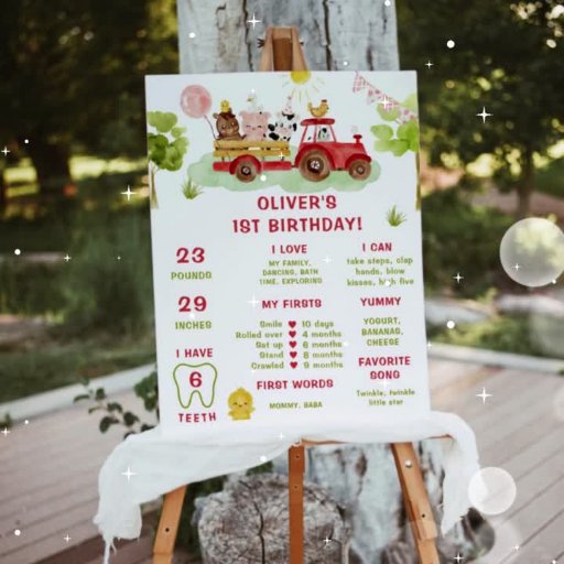 Cartel de cumpleaños de animales de granja de tractores rojos. Los elementos coincidentes están disponibles.