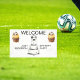 Cartel de bienvenida de la fiesta de cumpleaños del niño. Cualquier cumpleaños. Fútbol. Fondo blanco.