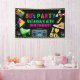 ¡Quién no ama a los ochenta! Impresiona a tus huéspedes con este divertido banner de cumpleaños, diseñado con colores de neón brillantes y objetos que datan de los años 80.
