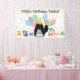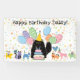 Haga especial el cumpleaños de su gato negro persa con nuestro adorable diseño con temática de gatos, con un gorra fiesta y globos de colores. Personaliza este divertido banner de la fiesta de cumpleaños con el nombre de tu gato para una celebración de cola.