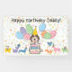 Haz que el cumpleaños de tu Cockapoo/Cavapoo merle de chocolate sea especial con nuestro adorable diseño temático de perros que incluye un sombrero de fiesta y globos coloridos. Personaliza este divertido banner de fiesta de cumpleaños con el nombre de tu perro para una celebración que hará que menee la cola.