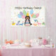 Haz que el cumpleaños de tu Cockapoo/Cavapoo tri color negro sea especial con nuestro diseño adorable con tema de perro que incluye un sombrero de fiesta y globos coloridos. ¡Personaliza este divertido banner de fiesta de cumpleaños con el nombre de tu perro para una celebración con meneos de cola!