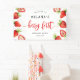 Banner de bienvenida de chica con temática de fresa de primer cumpleaños fiesta con color de agua ilustracion de la fruta roja. El texto dice "bienvenidos a la fiesta de cumpleaños de XX."