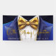Banner de la fiesta de los hombres de azul real y de oro con esmoquin azul, bowtie de oro y chaleco dorado. Este banner de la fiesta de cumpleaños real azul y oro es fácilmente personalizado para tu evento cambiando el texto según sea necesario. Este cartel de fiesta y evento de esmoquin funciona bien para eventos corporativos, jubilaciones, fiestas de solteros y cualquier evento formal de corbata negra. Y tu texto, logotipo, imágenes, etc., para personalizar.