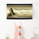 Bandera de fiesta de cumpleaños de zapatos de tacón alto con brillo negro y dorado. Puedes personalizar esta elegante bandera de fiesta de cumpleaños de zapato de tacón alto negro y dorado con el texto de tu elección en el estilo de letra y color que desees. Este es un diseño impreso sin brillo real.