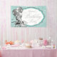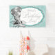 Banderín de cumpleaños azul turquesa y plateado con zapatos elegantes de tacón alto plateados y globos en un bonito fondo plateado y azul turquesa con elegante letra de fiesta de cumpleaños plateada. Puedes agregar texto para personalizar este hermoso banderín de cumpleaños azul turquesa. También puedes eliminar el fondo azul turquesa y agregar tu propio color. Este es un diseño impreso sin purpurina real, confeti, etc.