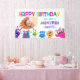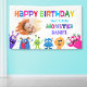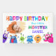 Un pequeño monstruo alegre da vida a esta pancarta con colores llamativos y encanto juguetón, creando el ambiente perfecto para una celebración de cumpleaños llena de diversión.