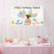 Haz que el cumpleaños de tu Griffon de Bruselas sea especial con nuestro adorable diseño temático de perro que incluye un sombrero de fiesta y globos de colores. Personaliza este divertido banner de fiesta de cumpleaños con el nombre de tu perro para una celebración con meneos de cola!