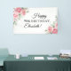 Elegantes rosas rosadas, decoraciones de fiesta de cumpleaños 90 femeninas florales - pancarta personalizada con nombre.