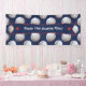 Vestir su fiesta de cumpleaños temática de béisbol con esta pancarta personalizada de feliz cumpleaños. La plantilla incluye un fondo de patrón de béisbol y un cartel con estrellas rojas y área de texto blanca para tu mensaje personal.