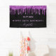 Una pancarta para una fiesta de cumpleaños número 50 (o de cualquier edad) glamurosa y femenina. Un fondo negro de moda con elegantes goteos en purpurina de imitación violeta, pinturas de goteo. El texto: Personalice y agregue un nombre escrito con un color púrpura claro en un guión de estilo moderno con letras a mano. Plantillas para una fecha y edad de 50 años. Es perfecto como una banner de bienvenida o como decoración fiesta.