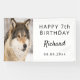 Animales, vida silvestre, salvaje, fiesta de cumpleaños con temática de leñador. Foto de una cabeza de lobo. Un lobo simpático con una sonrisa en su cara. Es invierno con un fondo blanco nevado. Para la fiesta de cumpleaños 7 de un niño. Personalice y agregue la edad, el nombre y las letras negras de fecha. Consejo: si desea reutilizar el cartel varios años, no agregue la edad en "Cumpleaños feliz" y use la fecha de nacimiento. Mantén la foto del lobo en el cartel o sustitúyala con una foto tuya del niño de cumpleaños.