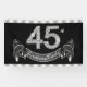 Banderín de cumpleaños número 45 con hermosos números de diamante plateados y banderín plateado y negro sobre fondo negro y plateado. Puedes cambiar el color del fondo, el tamaño del banderín y agregar texto para personalizar este hermoso banderín de cumpleaños número 45. Este es un diseño impreso sin diamantes reales, plata, brillo, etc.