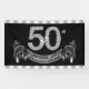 Banderín de cumpleaños número 50 con hermosos números de diamante plateado y banderín plateado y negro sobre un fondo negro y plateado. Puedes cambiar el color del fondo, cambiar el tamaño del banderín y agregar texto para personalizar este hermoso banderín de cumpleaños número 50. Este es un diseño impreso sin diamantes reales, plata, brillo, etc.