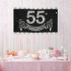 Banderín de cumpleaños número 55 con hermosos números de diamante plateados y banderín bonito plateado y negro sobre un fondo negro y plateado. Puedes cambiar el color del fondo, cambiar el tamaño del banderín y agregar texto para personalizar este hermoso banderín de cumpleaños número 55. Este es un diseño impreso sin diamantes reales, plata, brillo, etc.